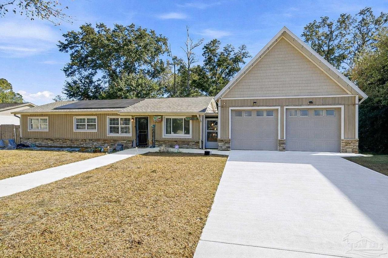 Your private backyard escape awaits, complete with an outdoor kitchen, Master Spa Twilight 7.2 6 seat therapeutic Spa., and the perfect space to relax or entertain. If outdoor living is at the top of your list, this one is a must-see. Whether you're unwinding after a long day or hosting friends and family, this backyard was designed to be enjoyed. Centrally located in Pace near shopping, dining, and everyday conveniences, this thoughtfully updated 3-bedroom, 2-bath home offers both comfort and versatility. Inside, you'll find wood-look tile flooring throughout and fresh interior paint, creating a clean and cohesive feel. The flexible layout...read more
